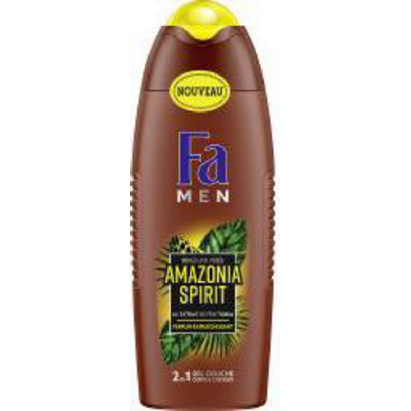 FA DCH MEN AMAZONIA SPIRIT250M HOMME GEL DOUCHE HOMME. Aqua (water, eau), sodium laureth sulfate, cocamidopropyl betaine, sodium chloride, glycerin, guar hydroxypropyltrimonium chloride, dipteryx odorata bean extract, parfum (fragrance), coco-glucoside, caprylyl/capryl glucoside, peg-7 glyceryl cocoate, sodium hydroxide, citric acid, linalool, limonene, hexyl cinnamal, citronellol, sodium benzoate, sodium salicylate, Cl 16035 (red 40), Cl 47005 (yellow 10), Cl 42090 (blue 1). Fa à votre écoute au 09 69 32 06 50 (appel non surtaxé). Produit unitaire EAN 3178041338226.